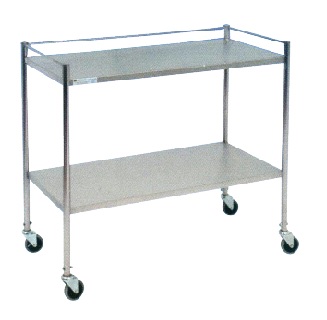 STAINLESS STEEL INSTRUMENT TROLLEY C/W GUARDRAILS